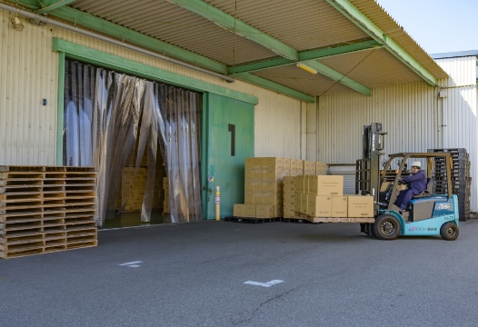 2F・3Fに大型保管スペースを併設し、生産から出荷までを一貫管理。